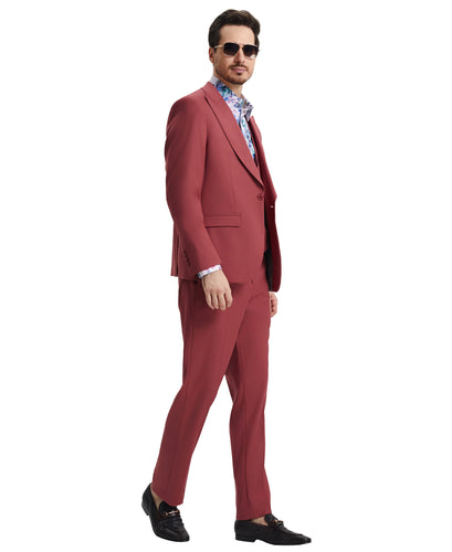 Stacy Adams 3 PC Coral Solid w U-Shape Vest Mens Suit